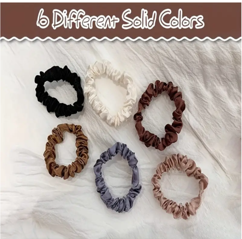 6-Pack Elegant French Satin Scrunchies for Women