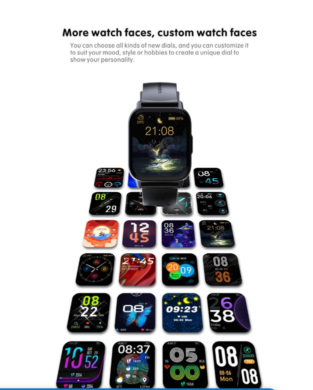 Display screen- 1.69' 240 x 280 Touch screen (multiple face-display options)
